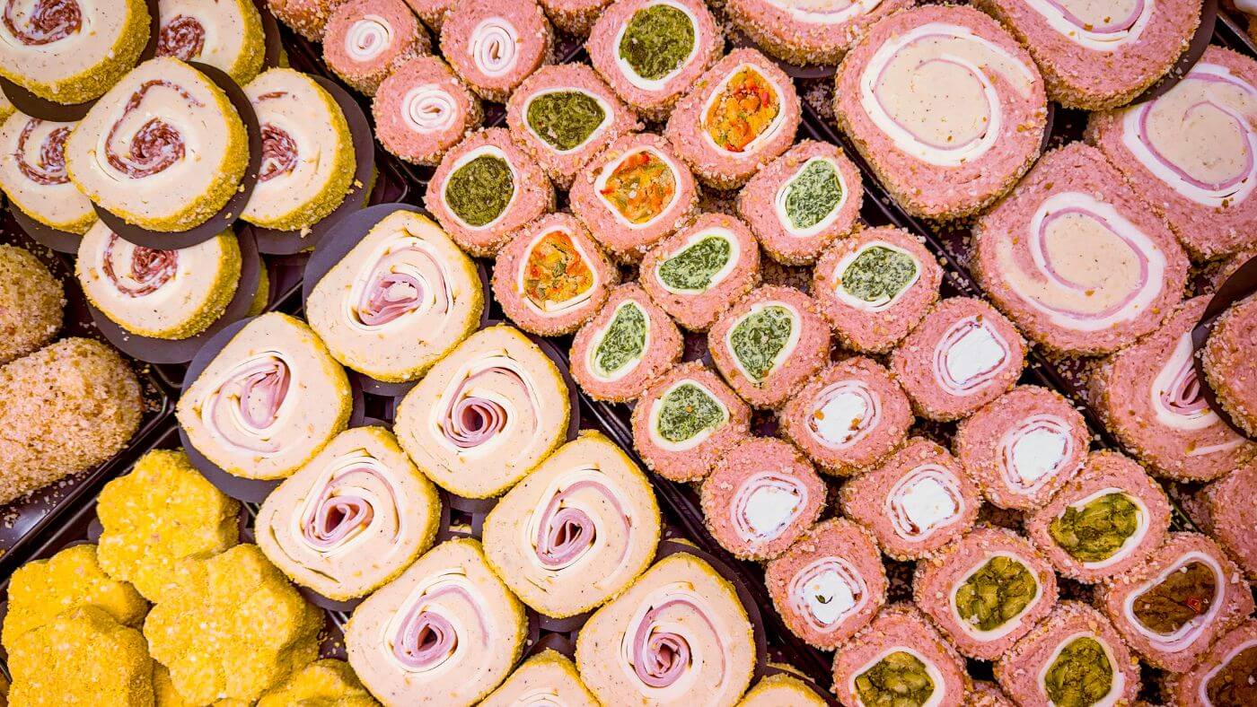 Fetta di polpettone di scottona con zucchine, pistacchio, provolone del monaco e provola