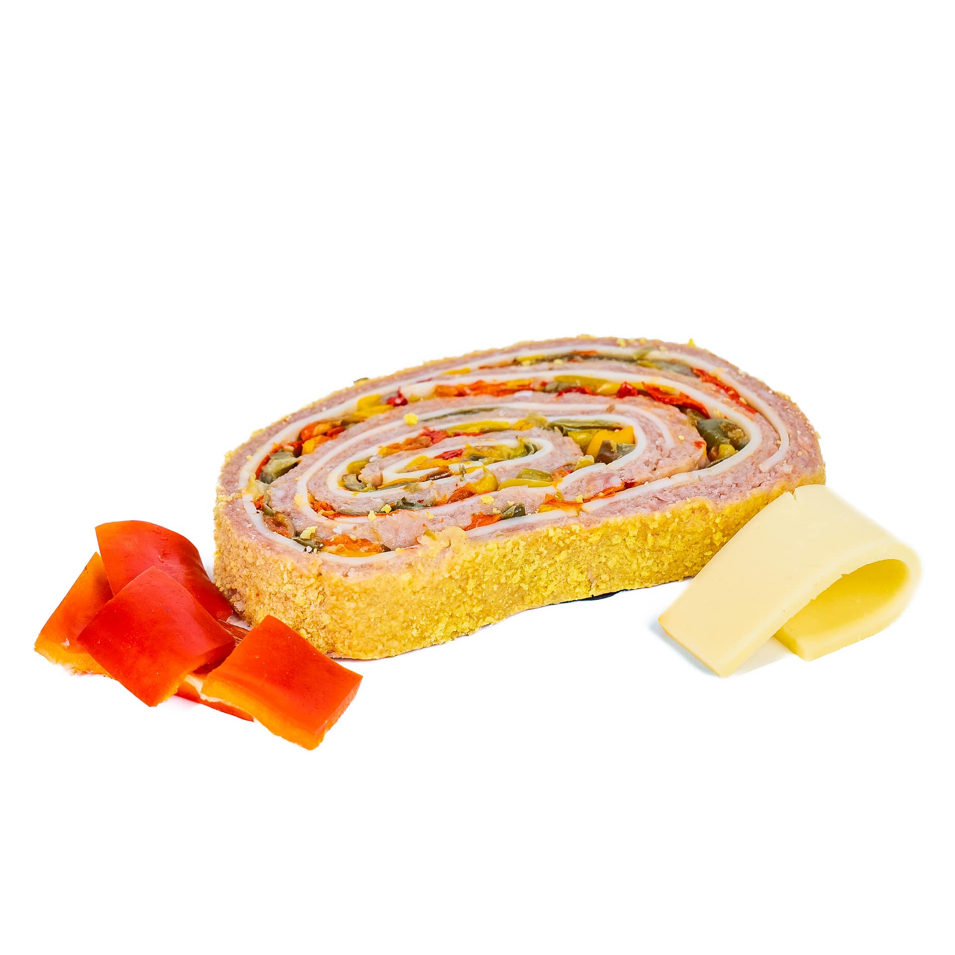 Carne di pollo, pangrattato, uovo, peperoni e provola.